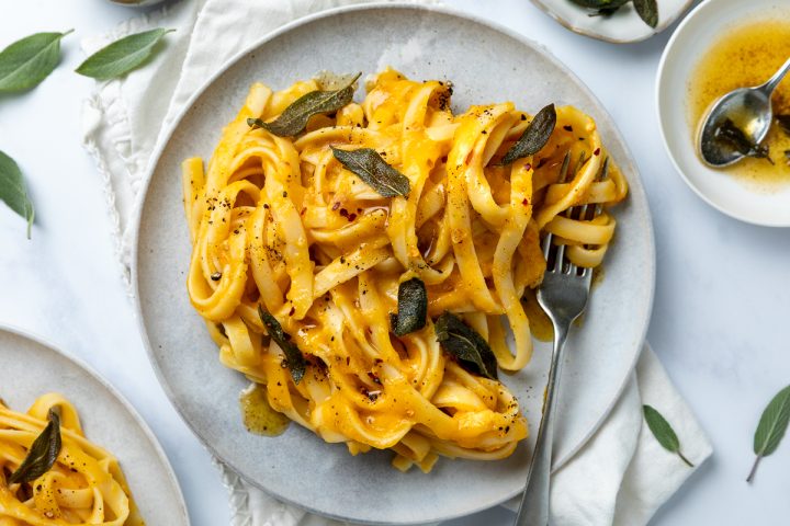 Whilst this butternut pumpkin pasta is a vegetarian recipe, you can easily add some crispy prosciutto or sprinkle over some parmesan shavings for a touch of saltness, or make vegan by using olive oil instead of butter. (For more butternut squash recipes, this lentil ragu is warming and comforting and also suitable for vegetarians and vegans, as is this butternut curry.)